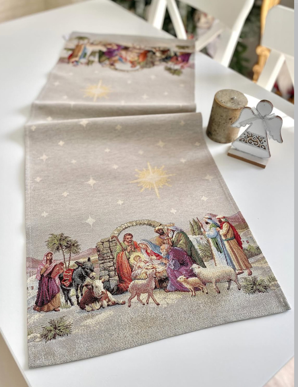Доріжка на стіл Новорічна "Вифлеємське диво" 45x140 см., гобелен золотий люрекс