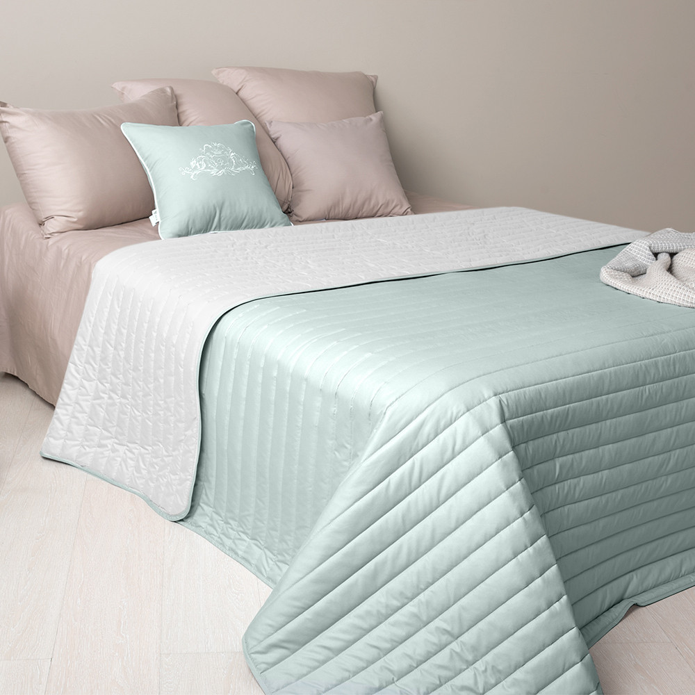Наповнювач в покривалах даної колекції – силіконізоване поліефірне полотно. Воно добре тримає обсяг, не вбирає пил і бруд, не викликає алергічних подразнень, швидко сохне після прання. Наявність наповнювача дозволяє використовувати покривало як літню ковдру.